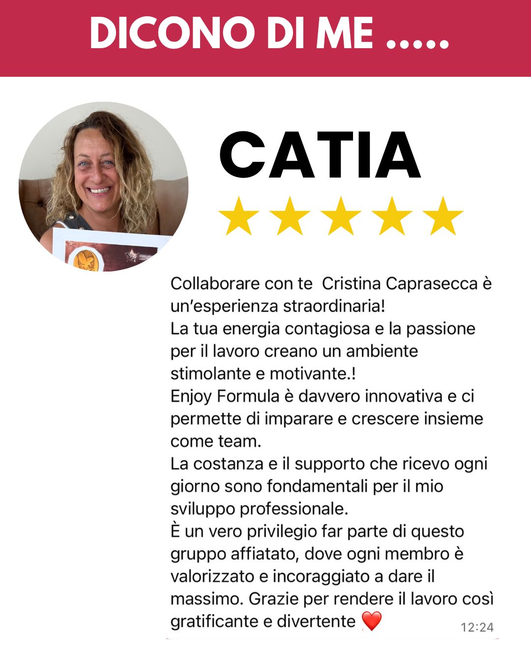 Oggi sono una delle Top Leader in Italia ,lavoro online dal mio smartphone , gestisco un azienda di successo e sono finalmente libera di vivere al meglio la mia carriera , il mio tempo e le mie passioni !